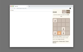 Chromeブラウザで人気のある2048パズルゲームを2048 Game拡張機能で直接お楽しみください。目標は、グリッド上の数字付きタイルを組み合わせて、貴重な2048タイルを達成することです。同じ数字を持つタイルを4方向に戦略的にスライドさせて、その値を2倍にします。この中毒性のあるゲームは、論理的思考と問題解決能力に挑戦し、グリッドのオーバーフローを防ぐために注意深い計画が必要です。